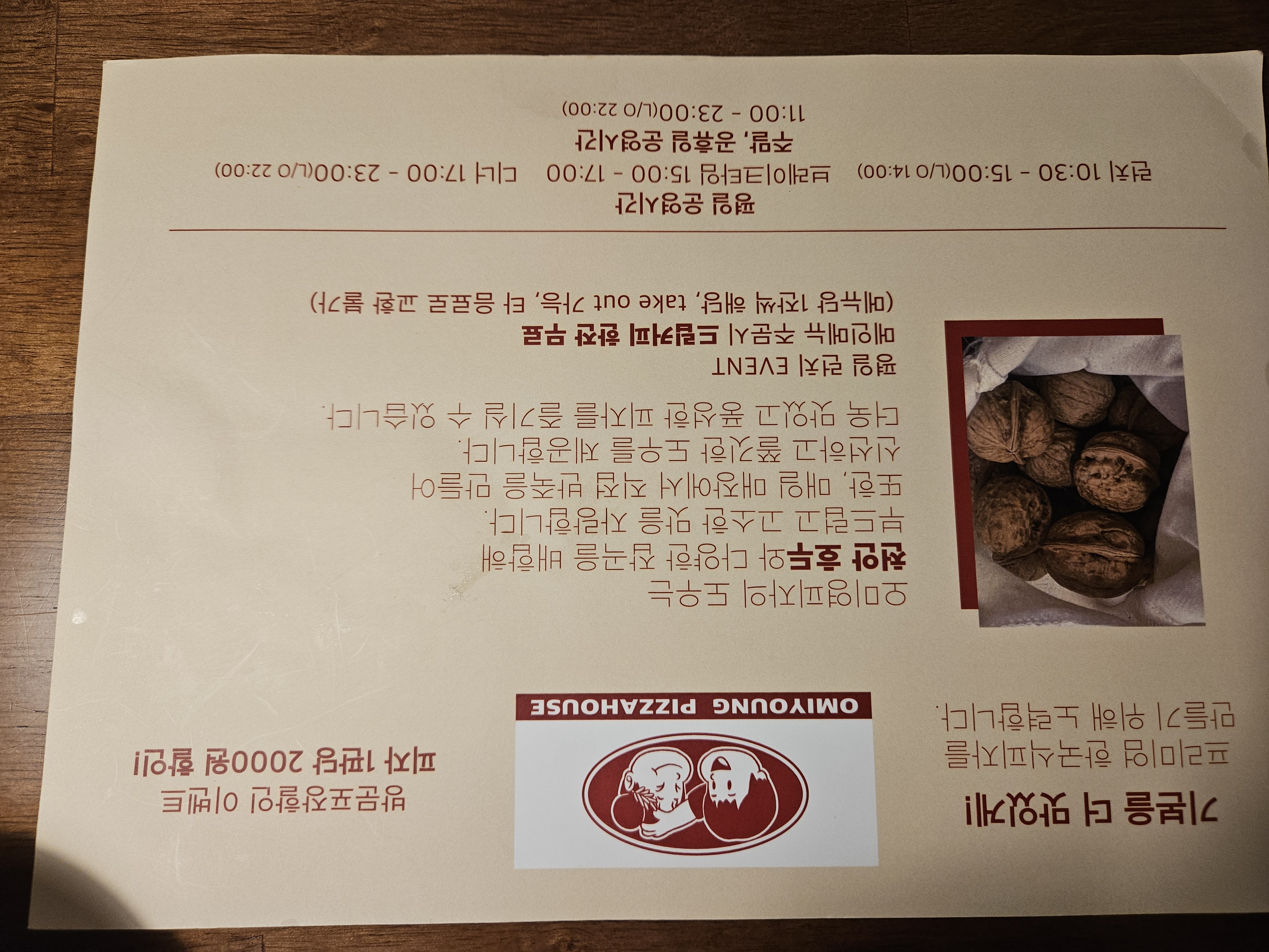 오미영 시그니처 피자 18,000원 수제 잡곡·호두 도우 사용. 식감 극강.